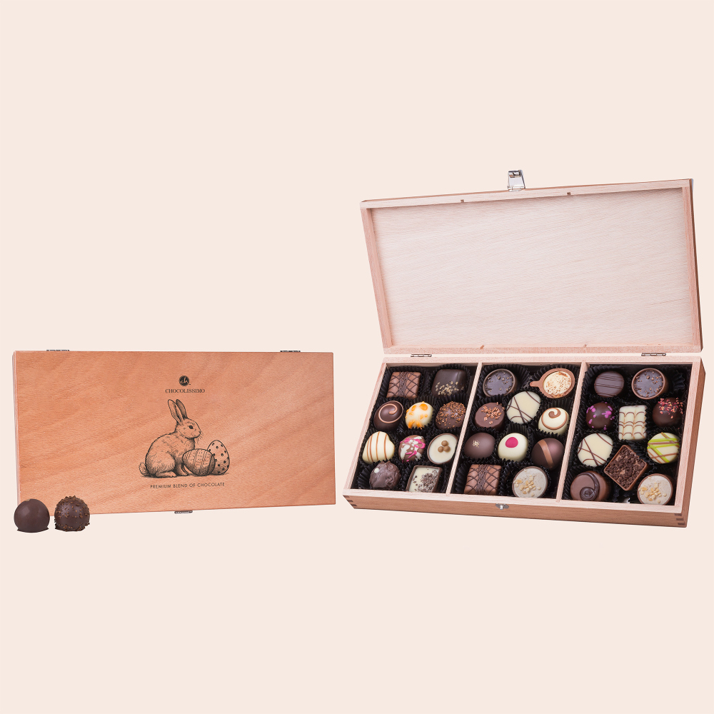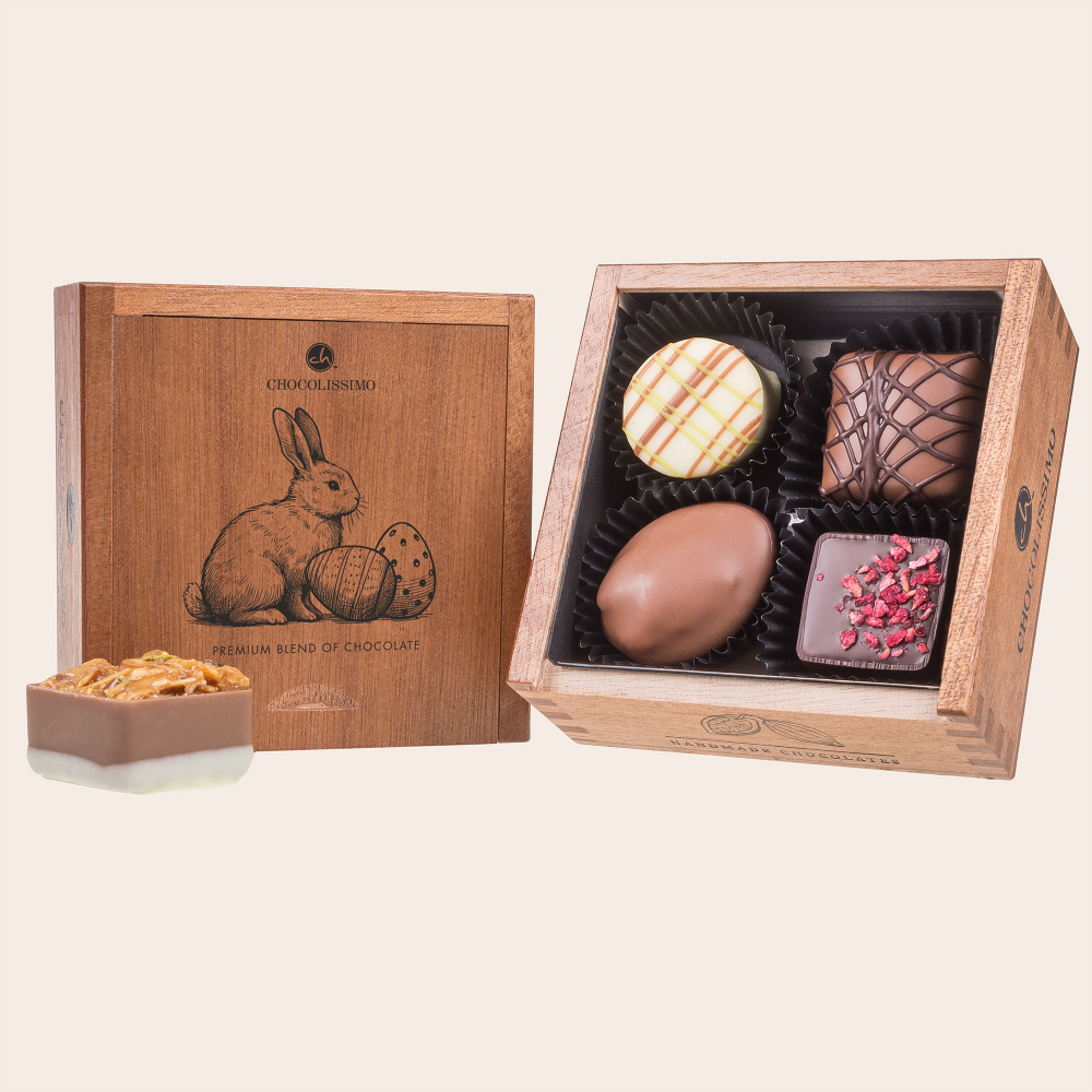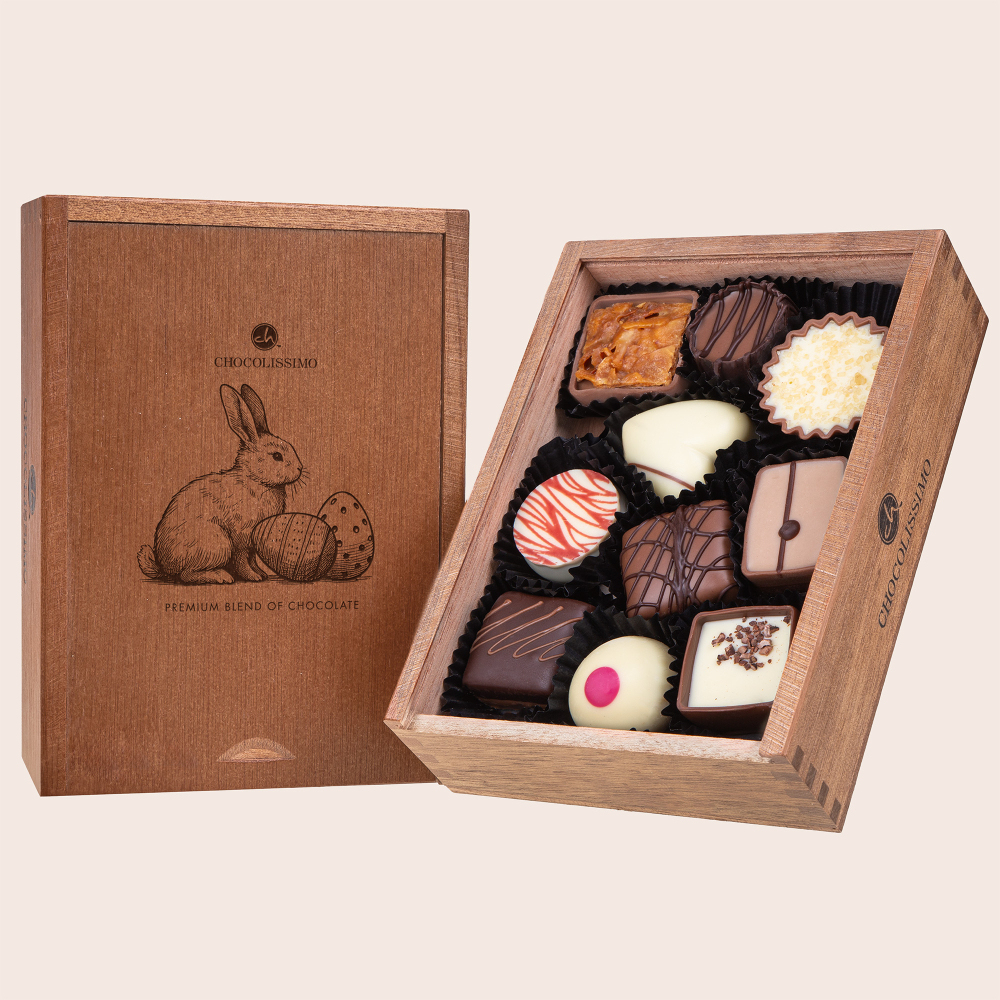 Osterpralinen - Easter Chococase im Holzkästchen handgefertigt belgisch | Chocolissimo