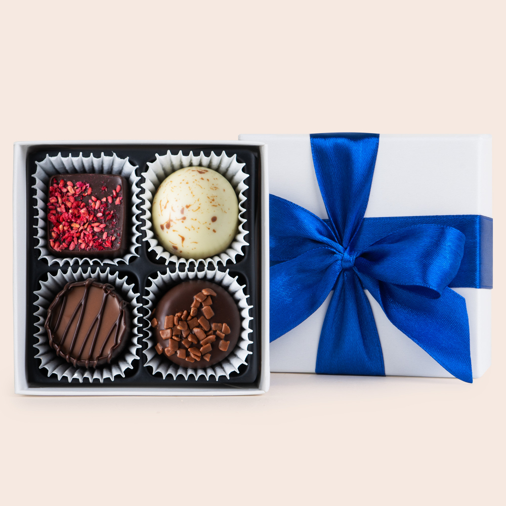 Osterpralinen Geschenkbox mit 4 Pralinen-Ostereiern – handgefertigte Pralinen zu Ostern