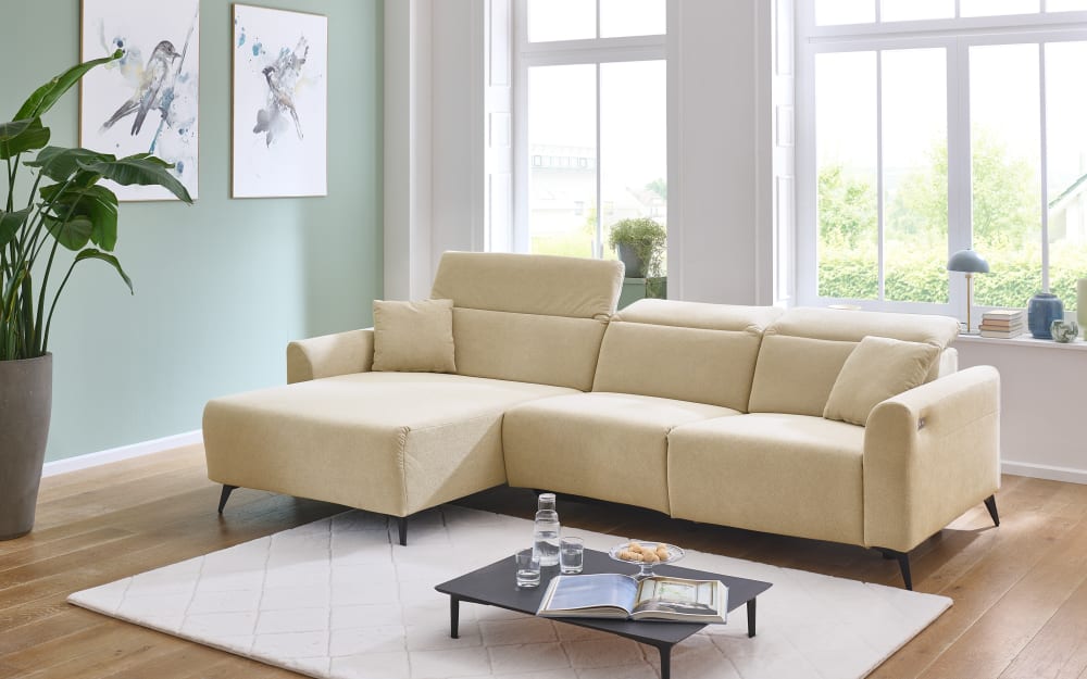 LetSit Ecksofa Rocco L Egon, Loungesofa zum Entspannen, Ecksofa L Form, Polstersofa, Bequemes Couch mit Ottomane für Wohnzimmer, Beige, Links