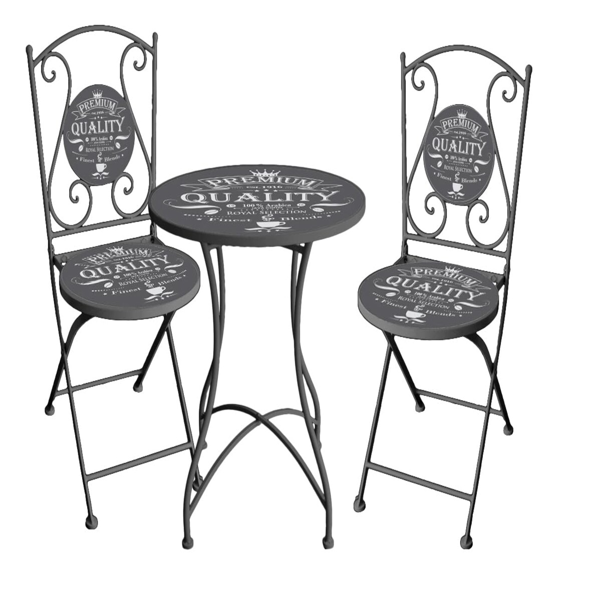 Bistro-Set MARTA 3-tlg Grau Eisen | Balkonset Gartenmöbel-Set Bistrotisch mit 2 Stühlen Outdoor Sitzgruppe