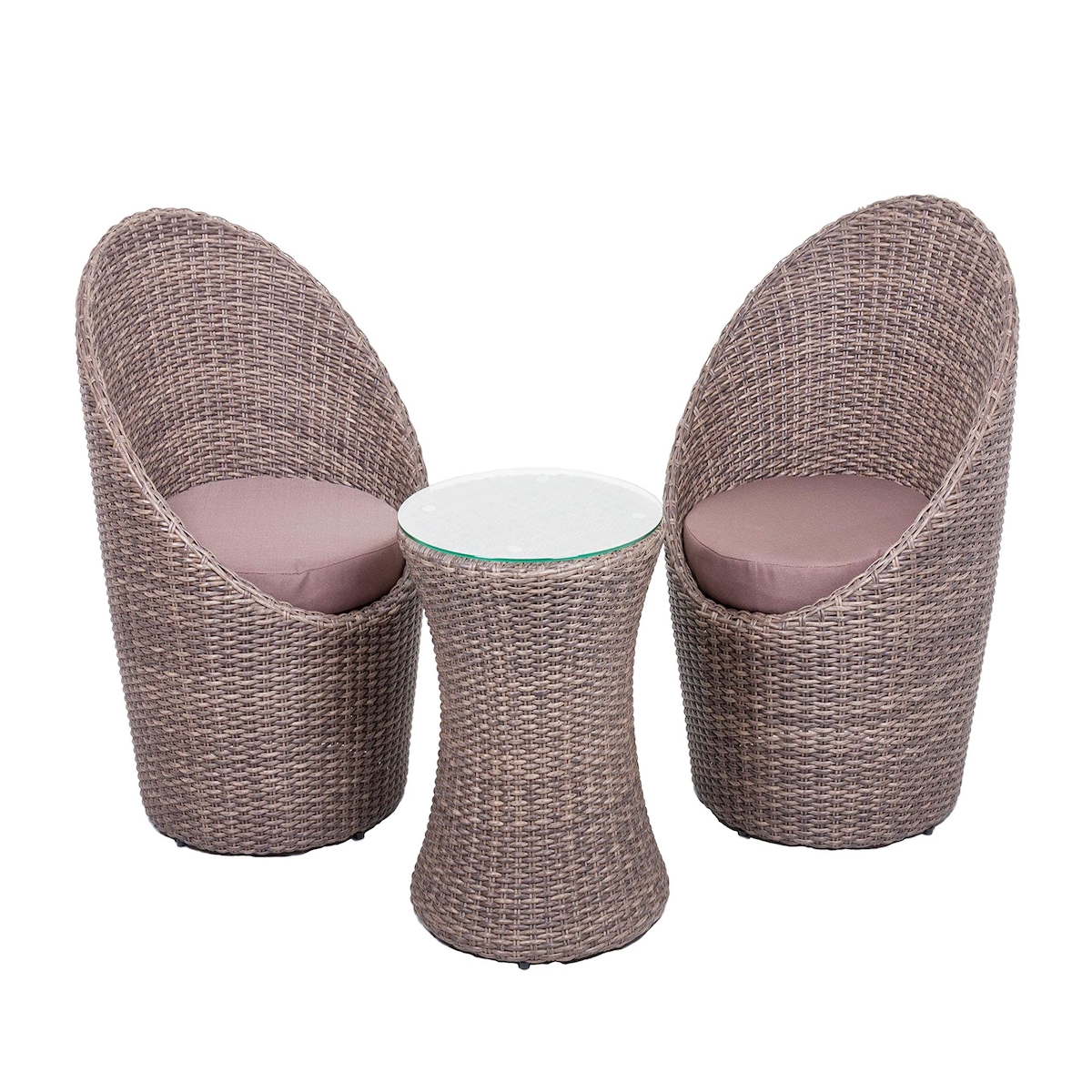 DELUKE Bistro-Set DARIA Korianderbraun Kunststoff Balkonset Gartenmöbel-Set Club-Set Bistrotisch Outdoor Sitzgruppe