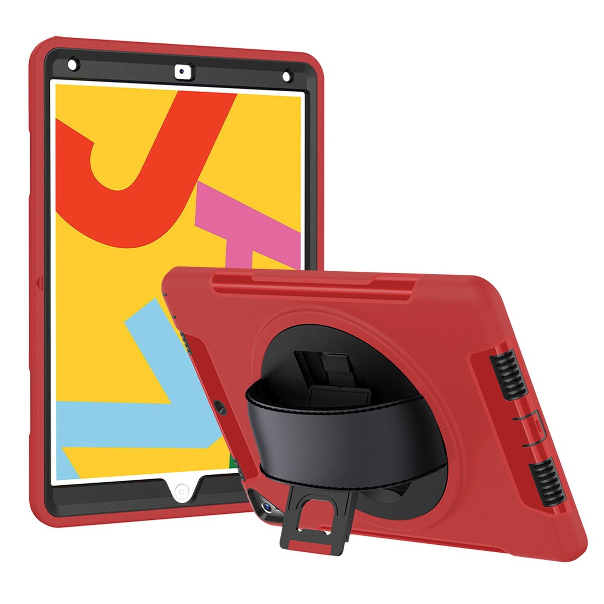 4in1 Hülle für Apple iPad (7th Generation) 2019/2020/2021 10.2 Zoll Outdoor Cover mit Displayschutz Handschlaufe Rot