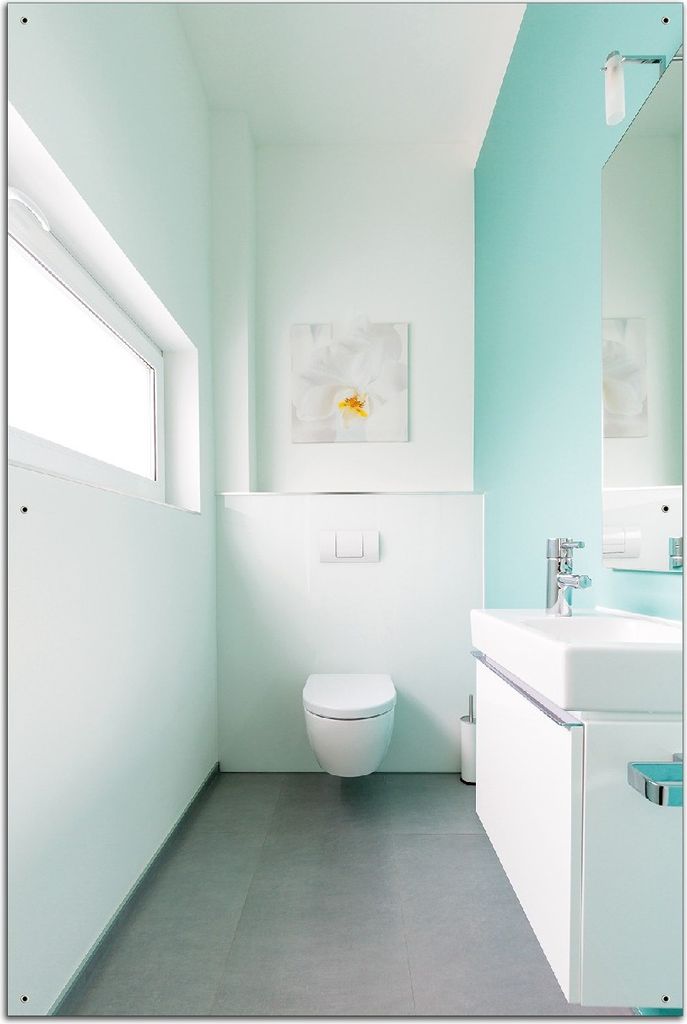 Wallario Outdoor-Poster für Garten oder Balkon, Motiv Badezimmer Gästetoilette Innenansicht - WC und Waschbecken, in ca. 120 x 180 cm