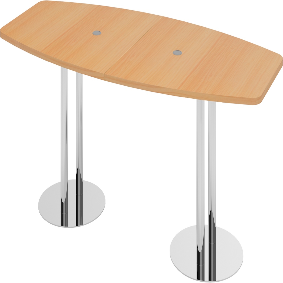 bümö Konferenztisch oval 280x130 cm großer Besprechungstisch in Buche, Besprechungstisch mit Chromsäulen, Meetingtisch für 10 Personen, XXL-Tisch für
