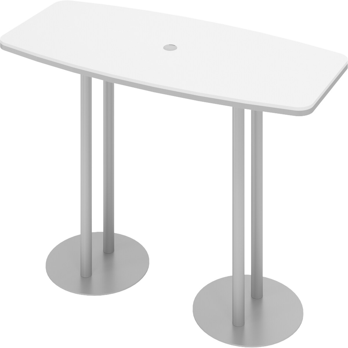 bümö Konferenztisch oval 220x103 cm großer Besprechungstisch in weiß, Besprechungstisch mit Säulen in Silber, Meetingtisch für 8 Personen, XL-Tisch