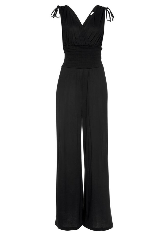 LASCANA Overall schwarz Gr. 44 für Damen. V-Ausschnitt und Bindeband. Figurumspielend