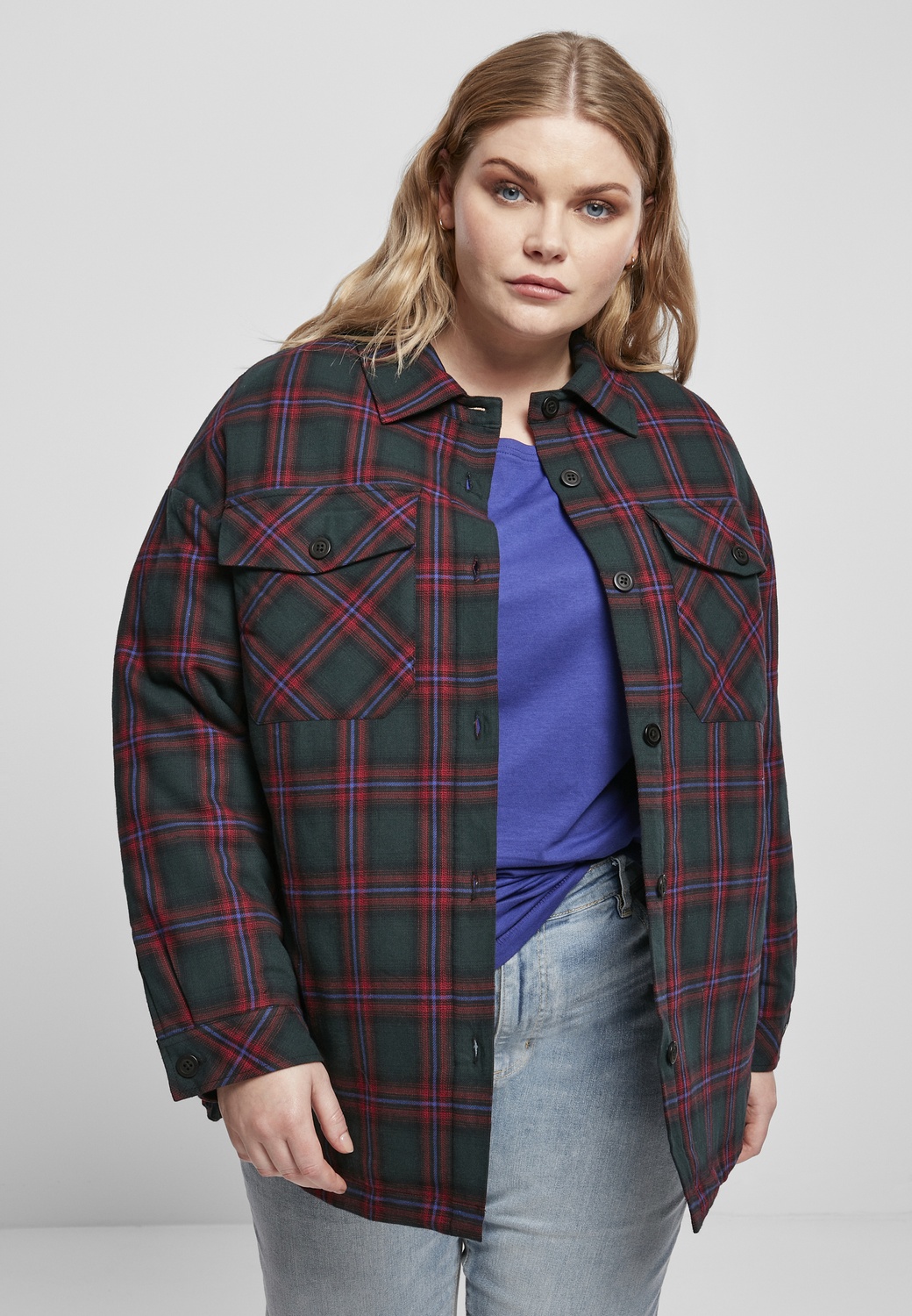 Urban Classics Damen Shirt Ladies Padded Overshirt Jasper/Blaupurple - Damen