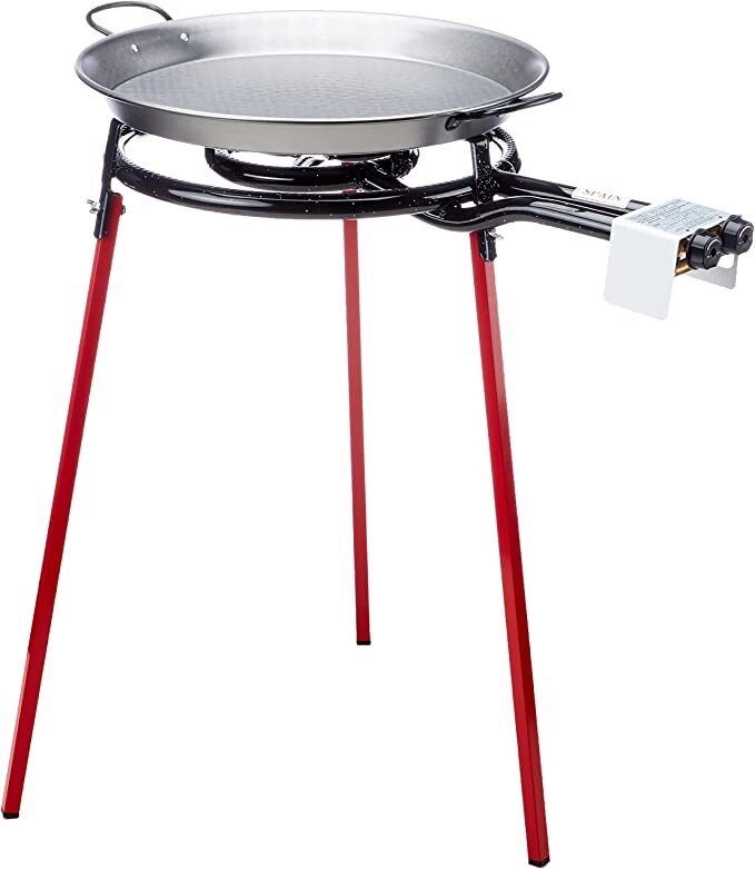 Paella-Pfannen-Set mit Brenner, 50,8 cm Kohlenstoffstahl Outdoor-Pfanne und verstärkten Beinen, importiert aus Spanien (14 Portionen)
