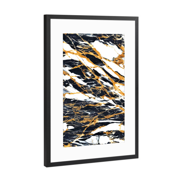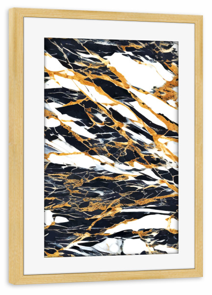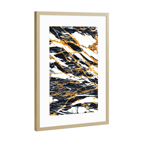 Poster mit Rahmen Gold "Painted Black Gold & White Marble" artboxONE - Abstrakt
