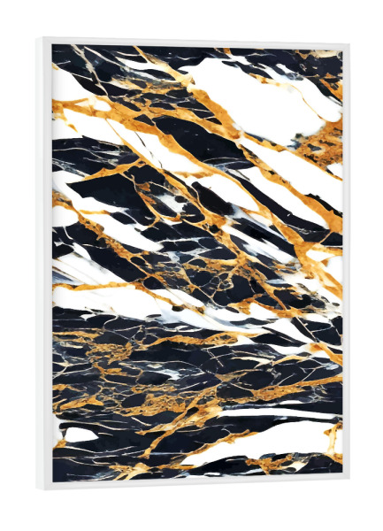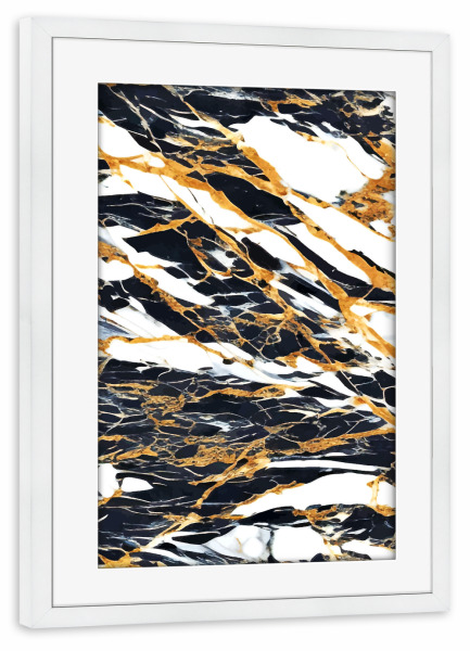 Poster mit Rahmen weiß "Painted Black Gold & White Marble" artboxONE - Abstrakt