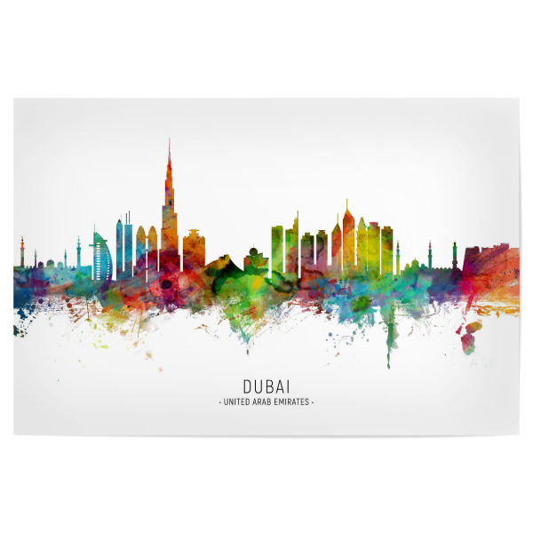 Poster "Dubai Skyline txt" artboxONE - Städte,Städte / Dubai - Dubai,United arab emirates,Skyline,Cityscape,Stadtbild,Watercolor,Painting