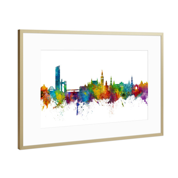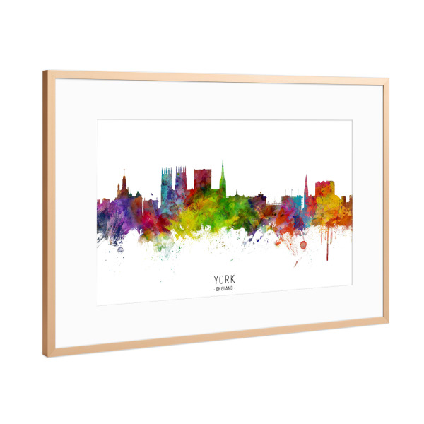 Poster mit Rahmen Kupfer "York England Skyline txt" artboxONE - Städte - York,England,Skyline,Cityscape,Stadtbild,Watercolor,Painting
