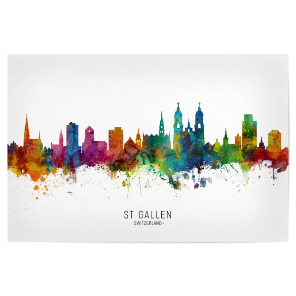 Poster "St Gallen Switzerland Skyline txt" artboxONE - Städte - St gallen,Switzerland,Skyline,Cityscape,Stadtbild,Watercolor,Painting