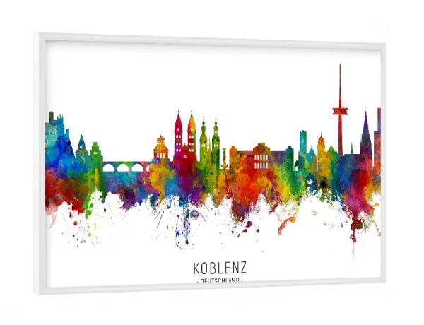 Poster mit weißem Rahmen "Koblenz Germany Skyline txt" artboxONE - Städte - Koblenz,Deutschland,Skyline,Cityscape,Stadtbild,Watercolor,Painting