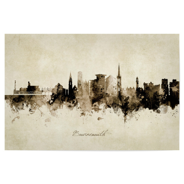 Poster "Bournemouth England Skyline Sepia" artboxONE - Städte - Bournemouth,England,Skyline,Cityscape,Stadtbild,Watercolor,Painting