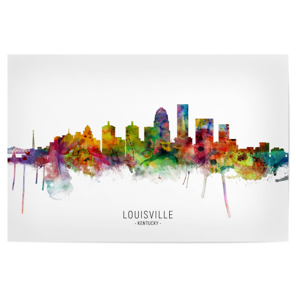 Poster 30x20 cm "Louisville Kentucky Skyline txt" artboxONE - Städte - Louisville,Kentucky,Skyline,Cityscape,Stadtbild,Watercolor,Painting