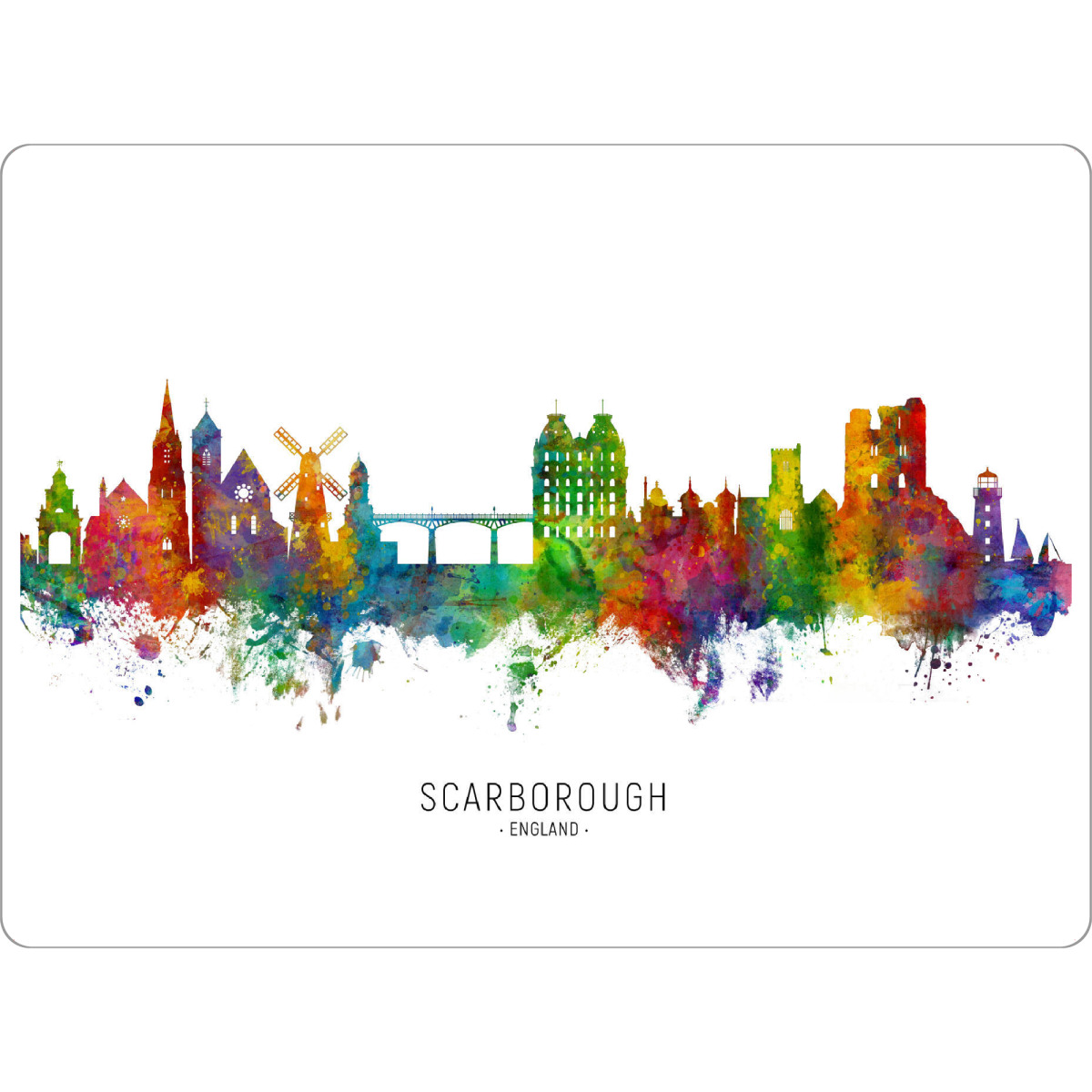 Tischset "Scarborough England Skyline txt" artboxONE - Städte - Scarborough,England,Skyline,Cityscape,Stadtbild,Watercolor,Painting