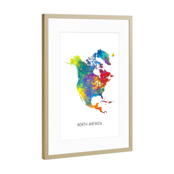 Poster mit Rahmen Gold "North America Watercolor Map" artboxONE - Kartografie - North america,Map,Watercolor,Painting