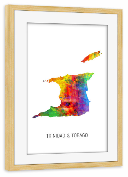 Poster mit Rahmen kiefer "Trinidad & Tobago Watercolor Map" artboxONE - Kartografie - Trinidad & tobago,Map,Watercolor,Painting