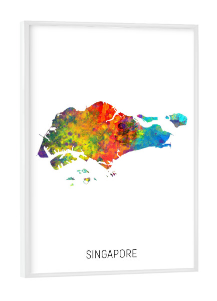Poster mit weißem Rahmen "Singapore Watercolor Map" artboxONE - Kartografie - Singapore,Map,Watercolor,Painting