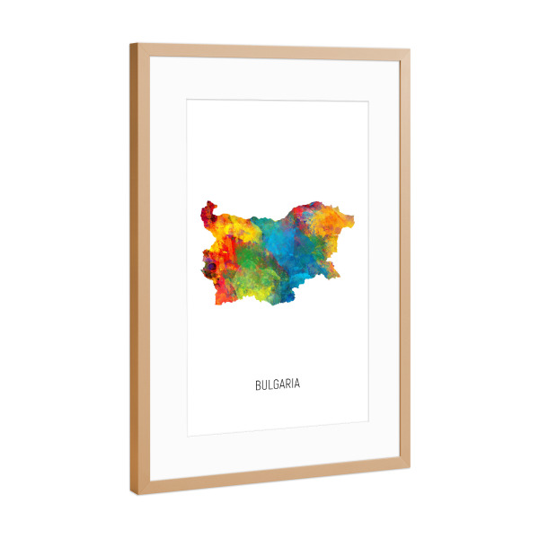 Poster mit Rahmen Kupfer "Bulgaria Watercolor Map" artboxONE - Kartografie - Bulgaria,Stadtkarte,Map,Watercolor,Painting