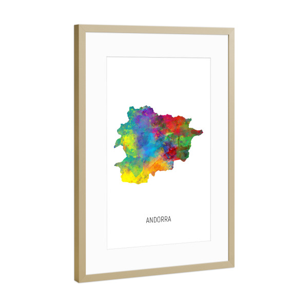 Poster mit Rahmen Gold "Andorra Watercolor Map" artboxONE - Kartografie - Andorra,Stadtkarte,Map,Watercolor,Painting