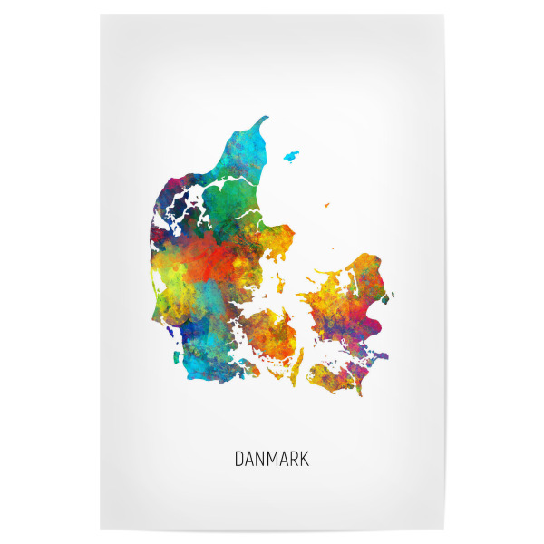 Poster 30x20 cm "Danmark Watercolor Map" artboxONE - Kartografie - Danmark,Stadtkarte,Map,Watercolor,Painting