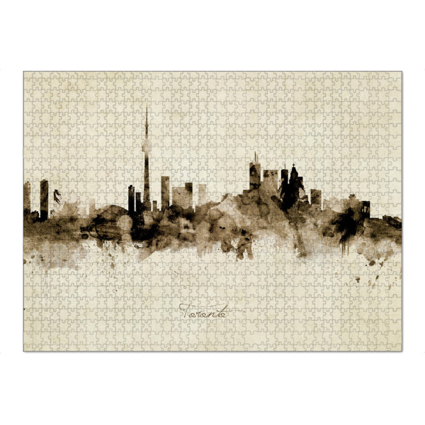Puzzle Ravensburger "Toronto Canada Skyline Sepia" artboxONE - Städte - Toronto,Canada,Skyline,Cityscape,Stadtbild,Watercolor,Painting
