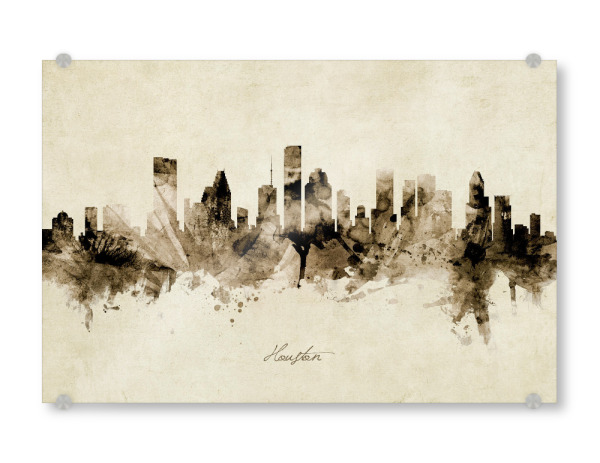 Acrylglasbild "Houston Texas Skyline Sepia" artboxONE - Städte - Houston,Texas,Skyline,Cityscape,Stadtbild,Watercolor,Painting