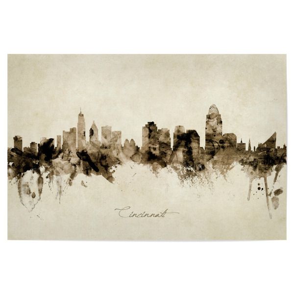 Poster "Cincinnati Ohio Skyline Sepia" artboxONE - Städte - Cincinnati,Ohio,Skyline,Cityscape,Stadtbild,Watercolor,Painting