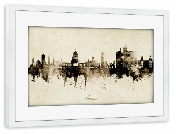 Poster mit Rahmen weiß "Havana Cuba Skyline Sepia" artboxONE - Städte - Havana,Cuba,Skyline,Cityscape,Stadtbild,Watercolor,Painting