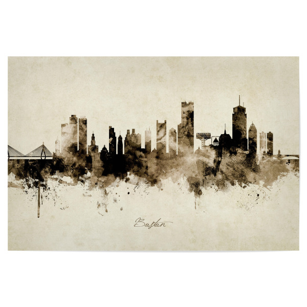 Poster "Boston Massachusetts Skyline sepia" artboxONE - Städte / Boston - Boston,Massachusetts,Skyline,Cityscape,Stadtbild,Watercolor,Painting