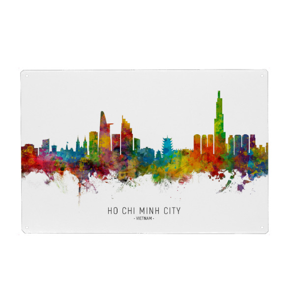 Metall Poster "Ho Chi Minh City Skyline txt" artboxONE - Städte - Ho chi minh city,Vietnam,Skyline,Cityscape,Stadtbild,Watercolor,Painting