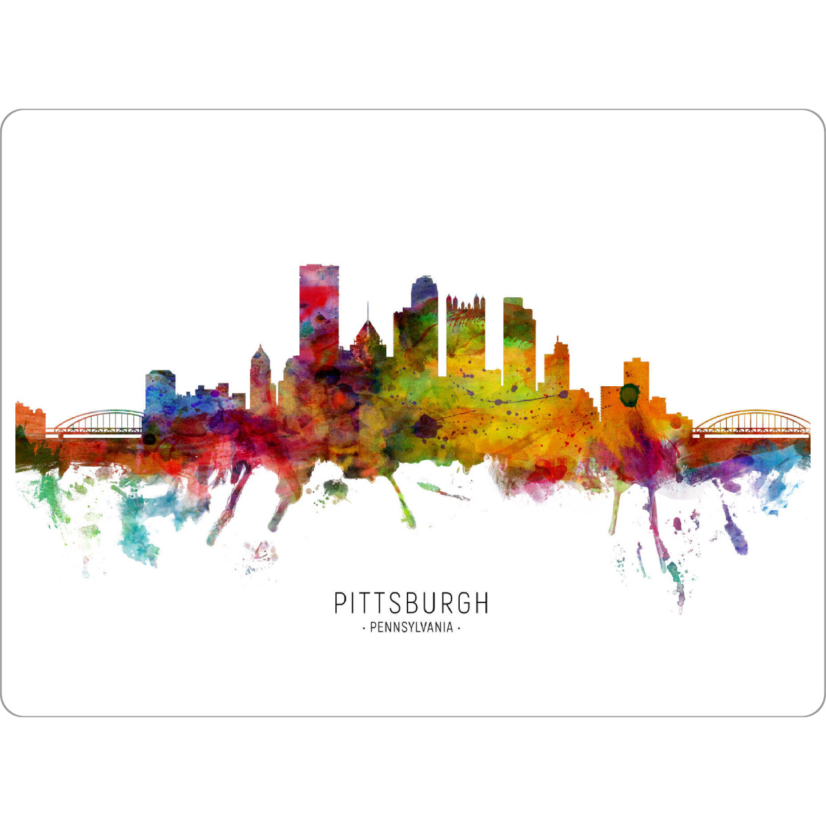 Tischset "Pittsburgh PA Skyline txt" artboxONE - Städte - Pittsburgh,Pennsylvania,Skyline,Cityscape,Stadtbild,Watercolor,Painting - Bild pittsburgh
