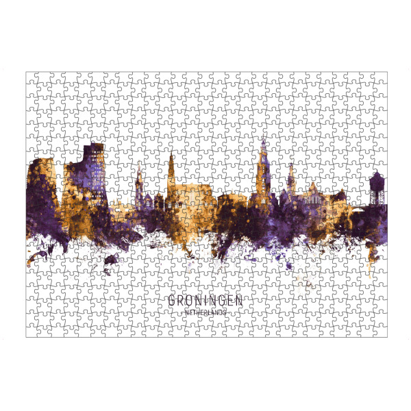 artboxONE Puzzle "Groningen Skyline PurpleGold" artboxONE - Städte - Groningen,Netherlands,Skyline,Cityscape,Stadtbild,Watercolor,Painting