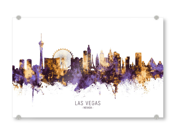 Acrylglasbild "Las Vegas Skyline PurpleGold" artboxONE - Städte / Las Vegas - Las vegas,Nevada,Skyline,Cityscape,Stadtbild,Watercolor,Painting,City