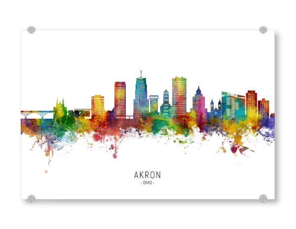 Acrylglasbild "Akron Ohio Skyline txt" artboxONE - Städte - Akron,Ohio,Skyline,Cityscape,Stadtbild,Watercolor,Painting,Bunt,Colorful,Stadt,City