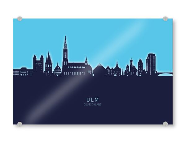 Acrylglasbild "Ulm Germany Skyline Glow Blue" artboxONE - Städte - Ulm,Deutschland,Skyline,Cityscape,Stadtbild,Watercolor,Painting,City,Stadt,Germany