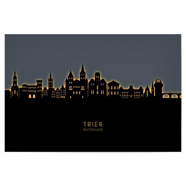 Poster "Trier Germany Skyline Glow Orange" artboxONE - Städte - Trier,Deutschland,Skyline,Cityscape,Stadtbild,Watercolor,Painting,Germany,Stadt,City