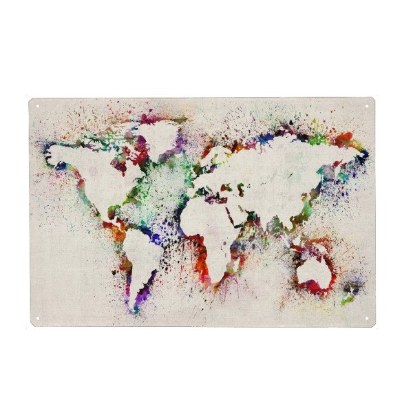 Holzbild "Paint Splashes World Map IV" artboxONE - Reise / Länder,Malerei,Weltkarten,Kartografie