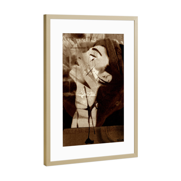 Poster mit Rahmen Gold "Carte postale" artboxONE - Fashion - Portrait,Woman,Model,Beauty,Fashion,Painting,Art,Arty,Make-up