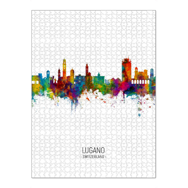 Puzzle Ravensburger "Lugano Skyline Portrait" artboxONE - Städte - Lugano,Switzerland,Skyline,Cityscape,Painting,Watercolour,Stadtbild - Bild lugano