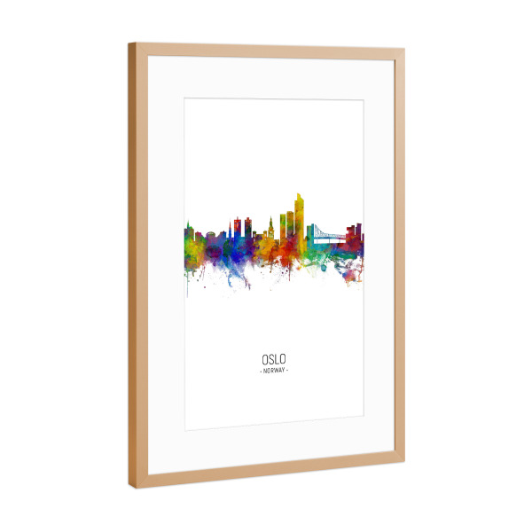 Poster mit Rahmen Kupfer "Oslo Skyline Portrait" artboxONE - Städte - Oslo,Norway,Skyline,Cityscape,Painting,Watercolour,Stadtbild