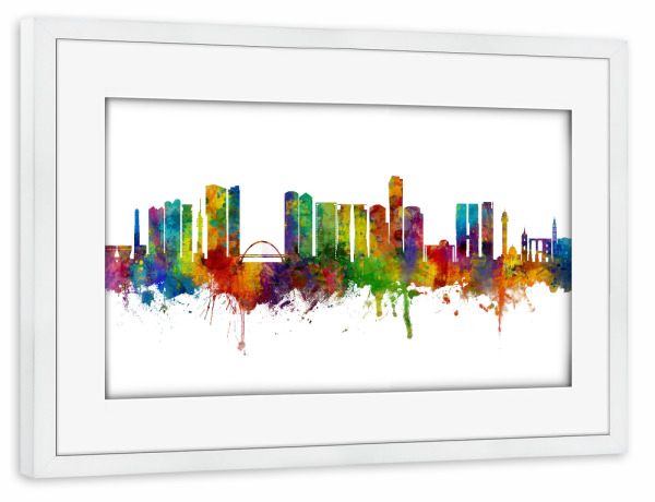 Poster mit Rahmen weiß "Tel Aviv Israel Skyline" artboxONE - Städte - Tel aviv,Israel,Skyline,Cityscape,Painting,Watercolour,Stadtbild
