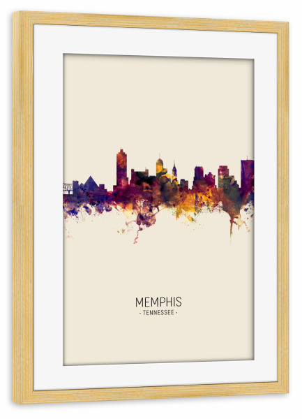 Poster mit Rahmen kiefer "Memphis Skyline Beige" artboxONE - Städte - Memphis,Tennessee,Skyline,Cityscape,Painting,Watercolour,Stadtbild