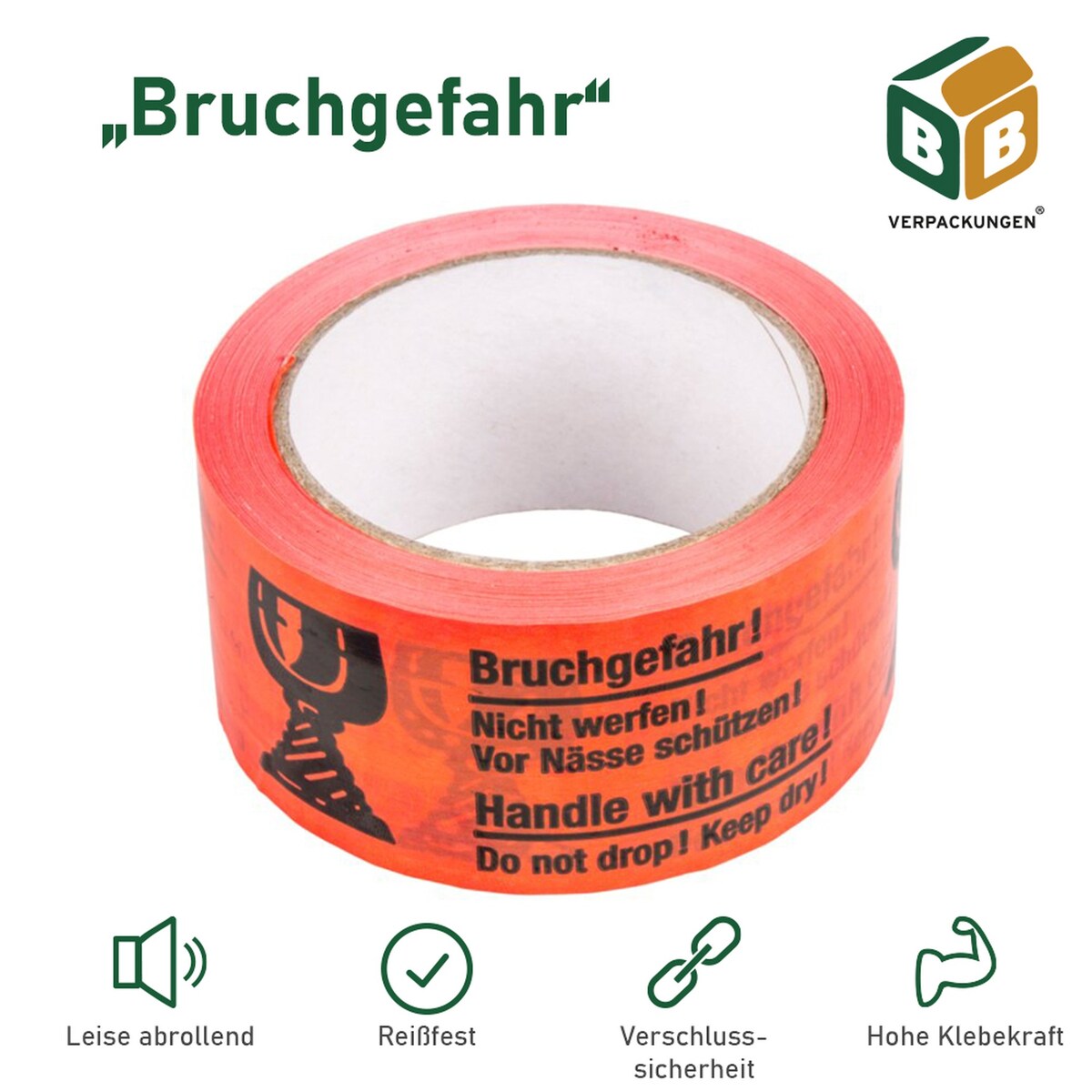 18 Rollen Rolle Klebeband PVC “Bruchgefahr“ (50 mm x 60 m) signalrot Paketband Transport Umzug Versand BB-Verpackungen