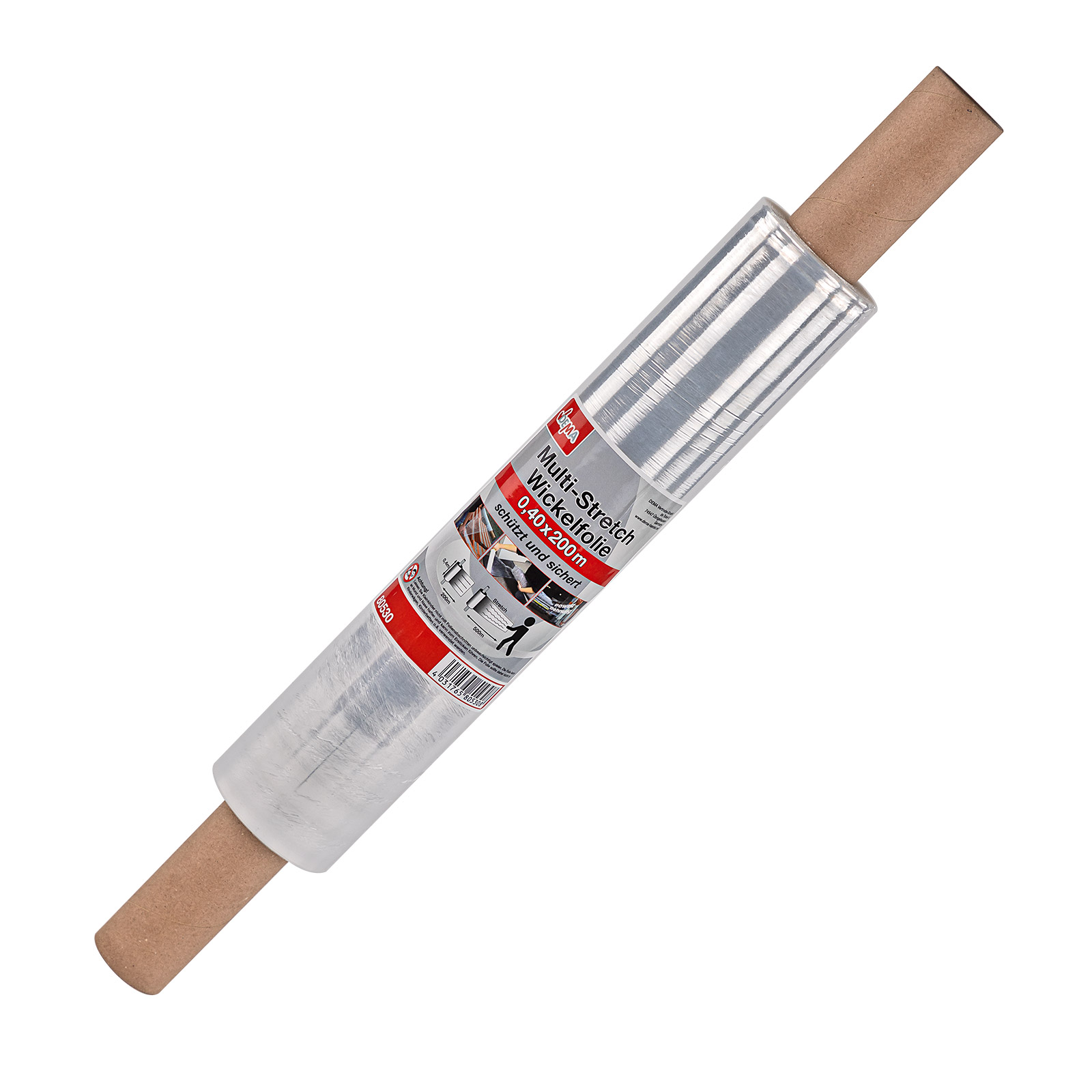Stretchfolie 40 cm x 200 m – Multistretch, Wickelfolie, Palettenfolie – 17 μm, stark, dehnbar, reißfest – Verpacken, Paletten, Lager, Tr