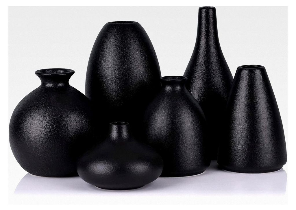 Mattschwarze Keramikvasen für die Dekoration, 6 Stück, Kleine Schwarze Boho-Vasen für Blumen, Tischdekoration, Mini-Knospen-Pampasgras, Couchtis...