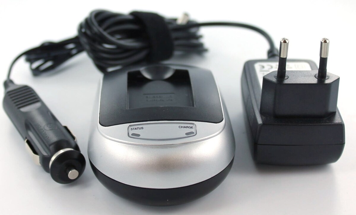 vhbw Ladegerät kompatibel mit Panasonic Lumix DMC-S3A, DMC-S3K, DMC-S2P, DMC-S3, DMC-S2V Kamera Camcorder - Ladeschale, Kfz-Adapter Ladeanzeige