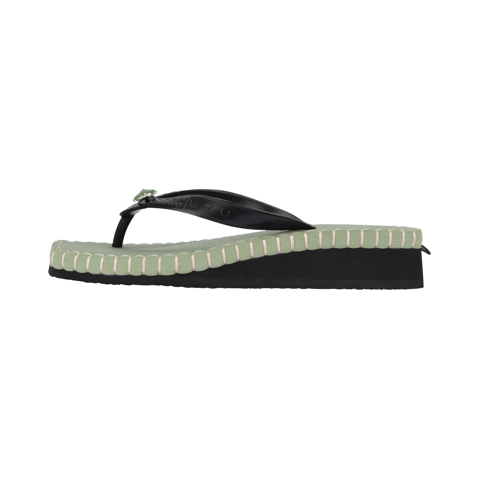 UZURII Slipper & Pantoletten - Zehentrenner Stitched by S Mid Heel Green - Gr. 41,5 (EU) - in Grün - für Damen - aus Kunstleder & Gummi & Gummi
